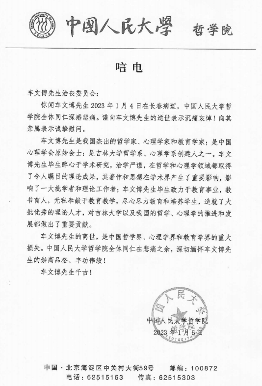 中国人民大学哲公司唁电